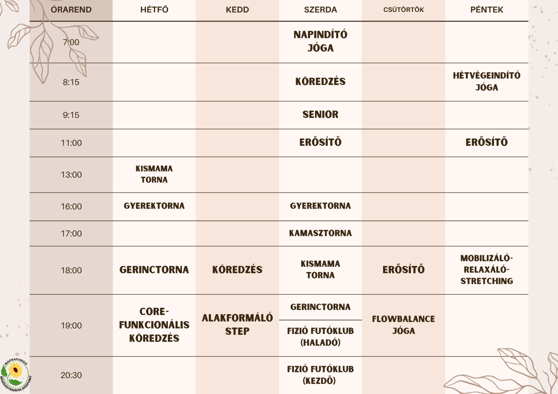 Csoportos tornáink prevenciós célokat szolgálnak, ide elsődlegesen egészséges személyeket várunk. Ha mozgásszervi panaszai vannak, csoportos tornán való részvétel előtt foglaljon időpontot egyéni gyógytorna állapotfelmérésre, ahol kollégánkkal megbeszélhetik a lehetőségeket!